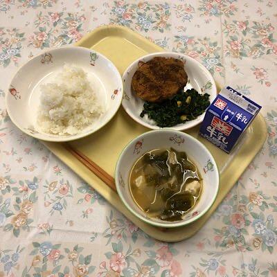 コロッケ 大根ととうふのみそ汁 ほうれん草のコーン和え ごはん 牛乳