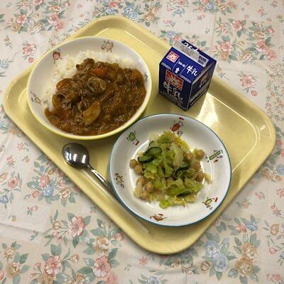ハヤシライス(バターライス) ひよこ豆サラダ 牛乳