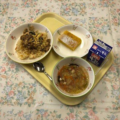 キムチビビンバ 春雨スープ ニンジンケーキ 牛乳