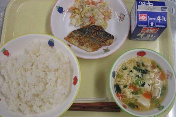ごはん サバのごまだれ焼き かきたま汁 ツナと白菜のごまサラダ 牛乳