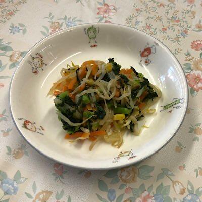 ナムルの具材は、ニンジン、小松菜、もやしのカットサイズをそろえて、味が良くしみ、食べやすい仕上がりです