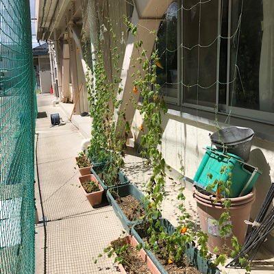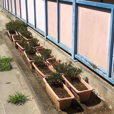 学校閉庁期間三日目 植物の水やり、金魚のエサやりに来ています