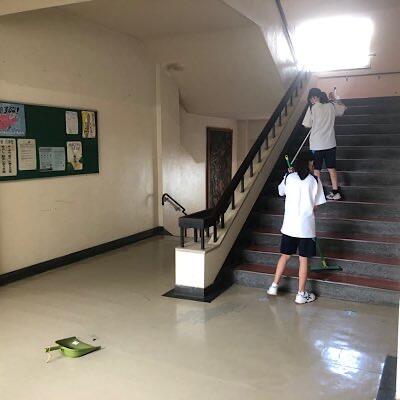 吹奏楽部は、校内清掃と夏休みの宿題チェックをしています