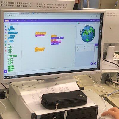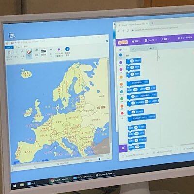 プログラミングソフト(スクラッチ)を使って、社会的知識を活用したプログラムを制作しています