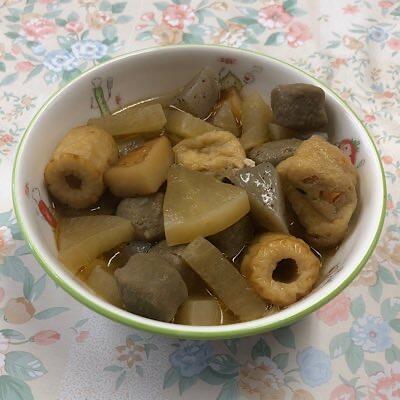 食べやすいサイズの具材は、ちくわ、さつま揚げ、がんもどき、つみれ、こんにゃく、大根