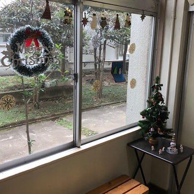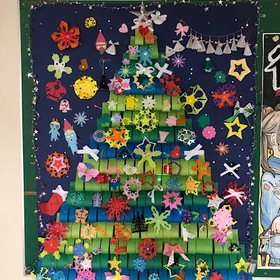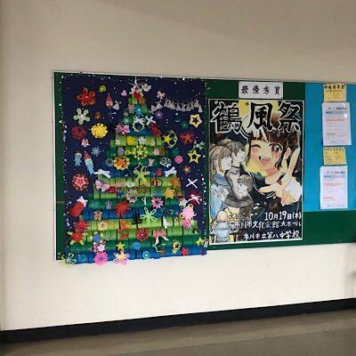 生徒&教職員手作りのクリスマスツリーが飾られています