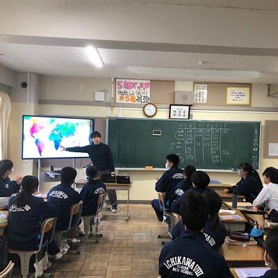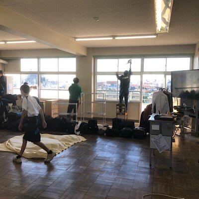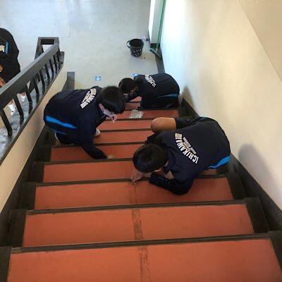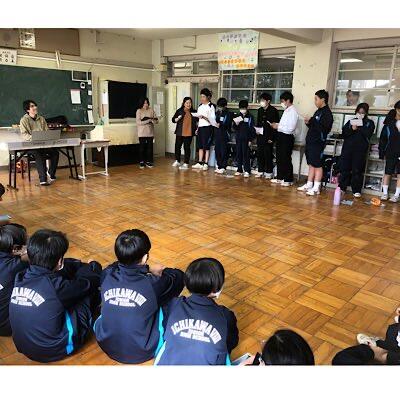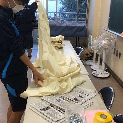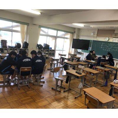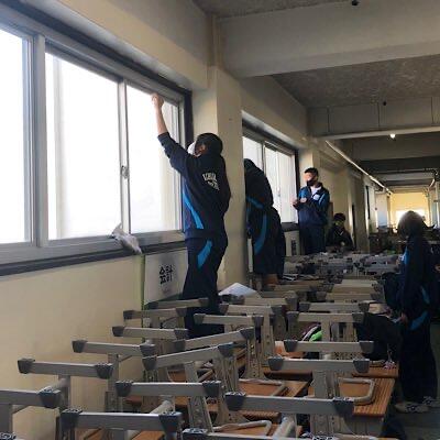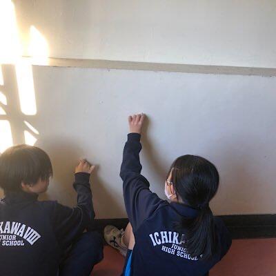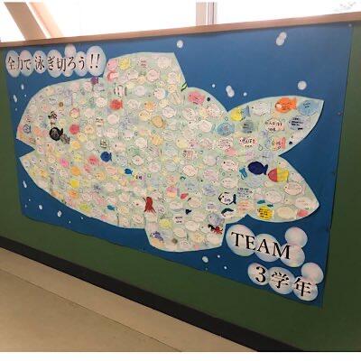 2階渡りろうかに、チーム三学年の決意表明を掲示しています
