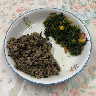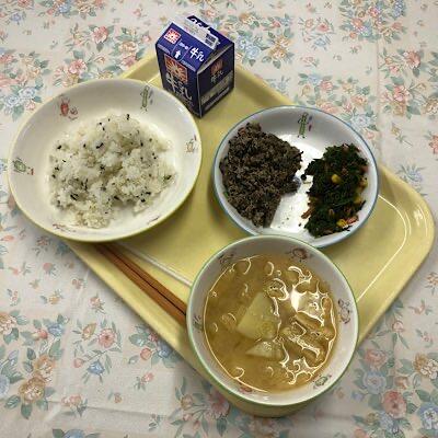 わかめごはん 和風ミート ほうれん草のコーン和え みそ汁