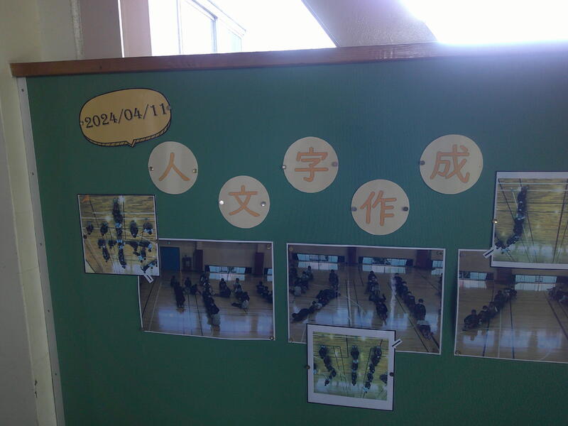 先日の集会で協力して行った人文字の様子が