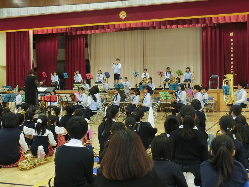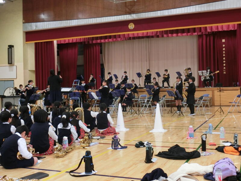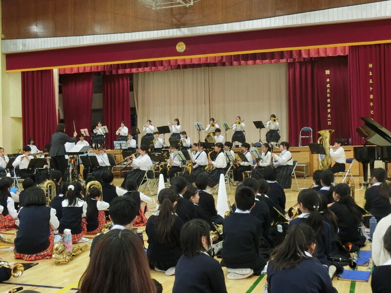 本校の体育館で八中ブロックの小中学校が一堂に会し、『地区別音楽会』を開催しました。