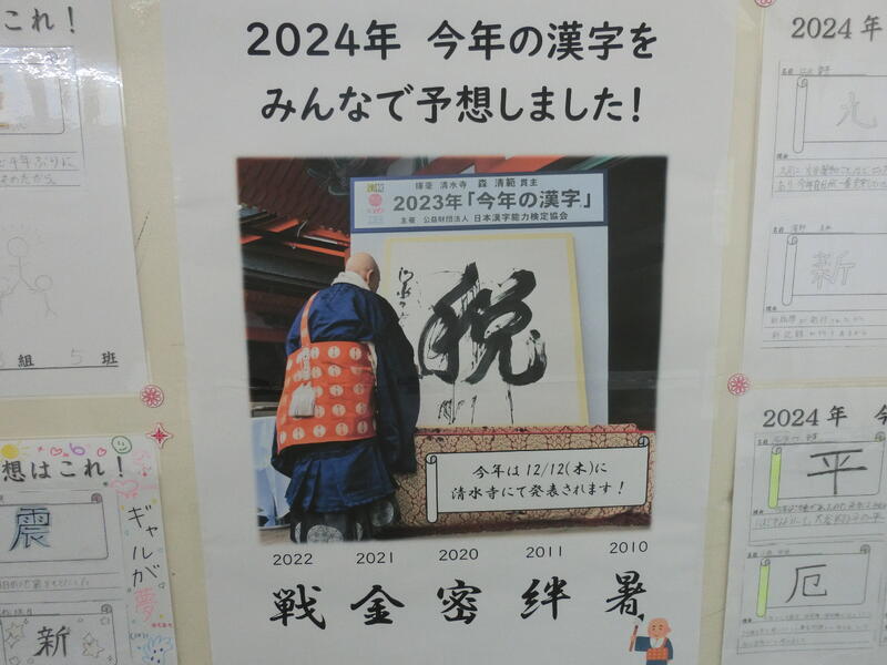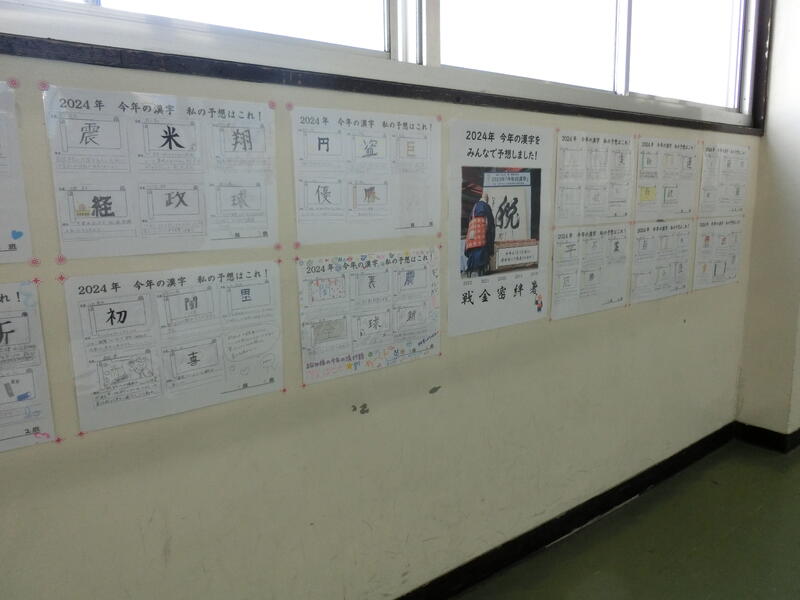 2学年フロアでは一年を振り返り、各自で予想した漢字が掲示されていました。