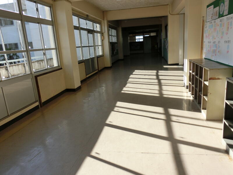 各教室はエアコンで温められていますが、廊下はとても寒いです。
