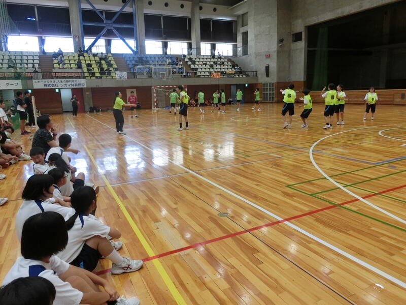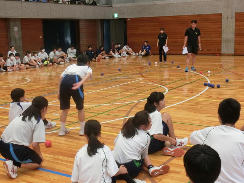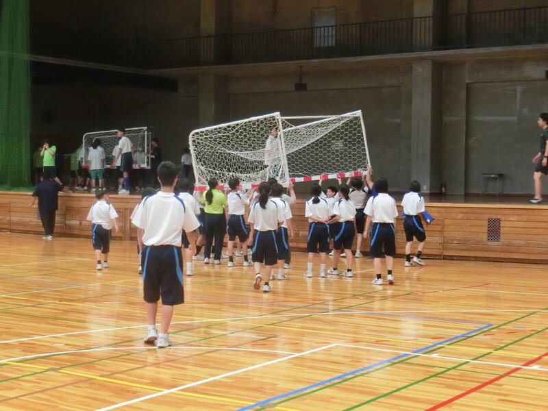 体育館で1年生が体育の授業を行っていました。