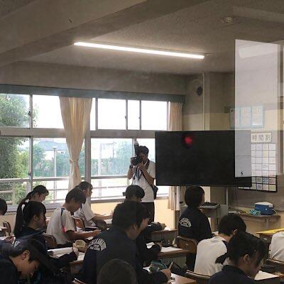卒業アルバム用に、カメラマンが授業風景を撮影しています