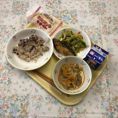 アジフライ だまこ汁 辛子和え ごはん 牛乳