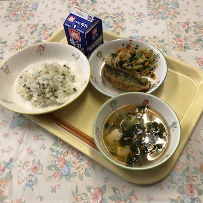 わかめご飯 アジのいそべ揚げ ごま酢和え すまし汁 牛乳