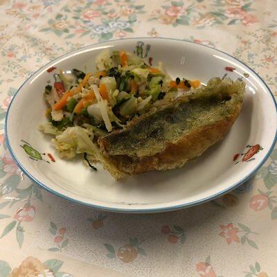 ふっくらと身厚のアジの揚げものは、カリカリで香ばしい衣をまとい、食べ応えアリ