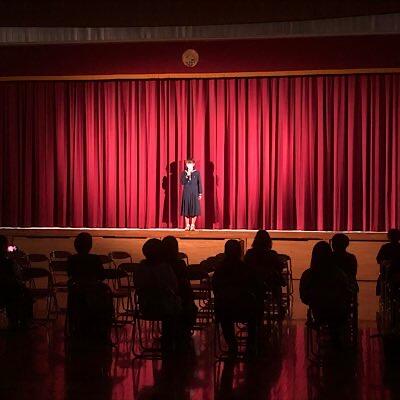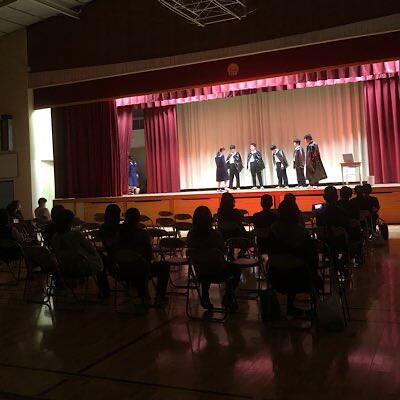 昨日のビデオ撮りに続き、今日は、配役生徒保護者と教職員に公演しています