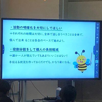 放課後、校外学習実行委員会では、二学年から一学年へ学習活動の引き継ぎを行なっています