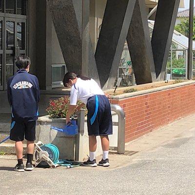 昼休み 整美委員会メンバーが、お花の世話をしています