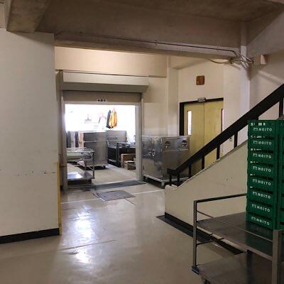 午前中に調理員さんたちが、空のコンテナを異動して搬入準備をしています