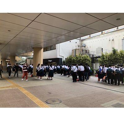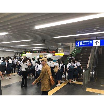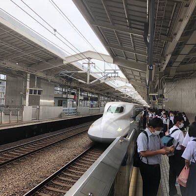 快速電車内で、赤ちゃんを抱いた女性のために席を空けて声をかける八中生徒たちがいました