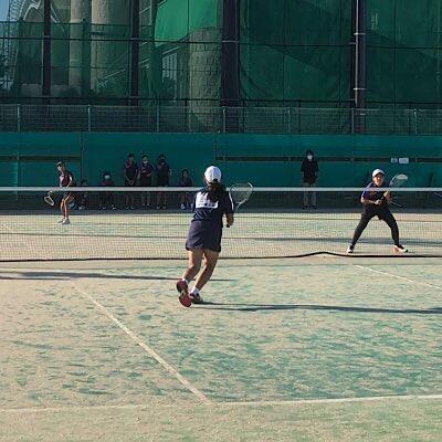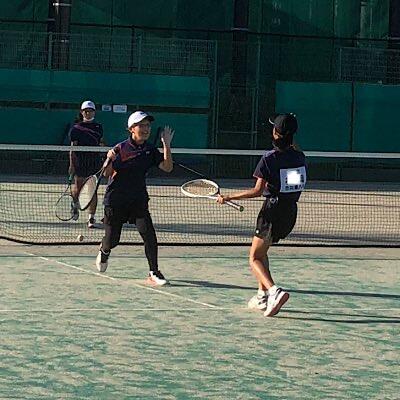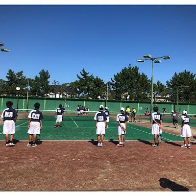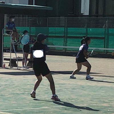 八中ユニフォームは、ブルーにピンクのアクセント 相手は、堀江中 一番手ペアを落とすが、二番手ペアが接戦に競り勝ち