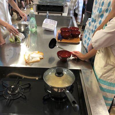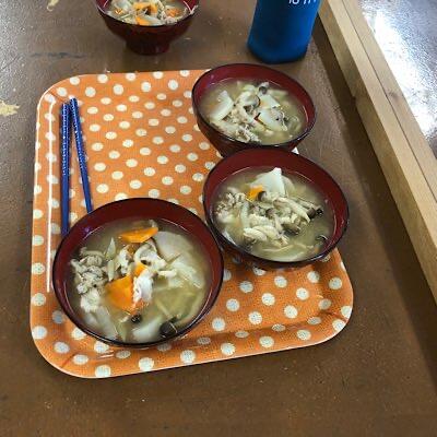 野菜、肉の煮汁で味噌としょうゆをとき入れて5分間待ちます
