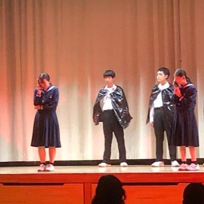 昨日のビデオ撮りに続き、今日は、配役生徒保護者と教職員に公演しています