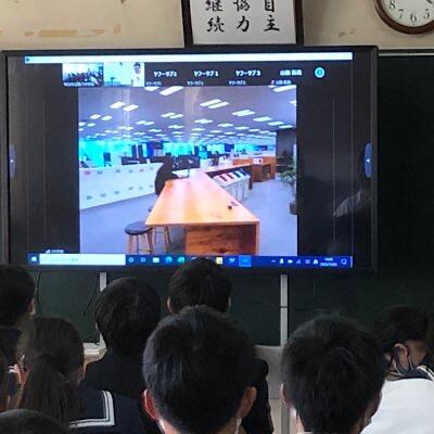 八中と協力企業のオフィスやスタジオとオンラインでつながり、オンタイムの説明と質疑応答を通して学習を深めます