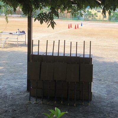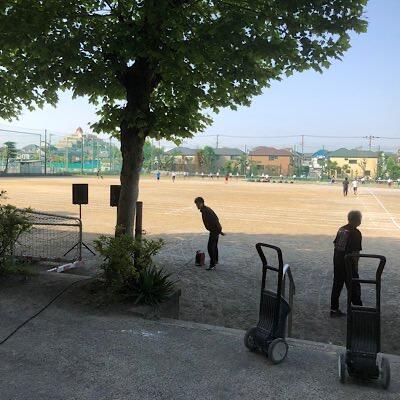 全体練習日の朝、委員会メンバーが競技場、放送準備をしています