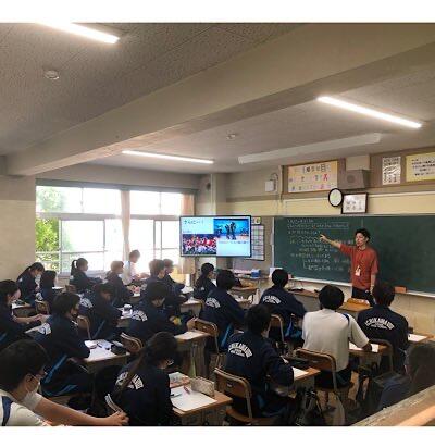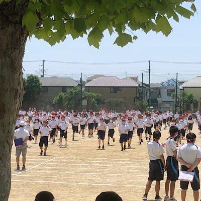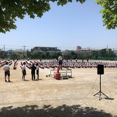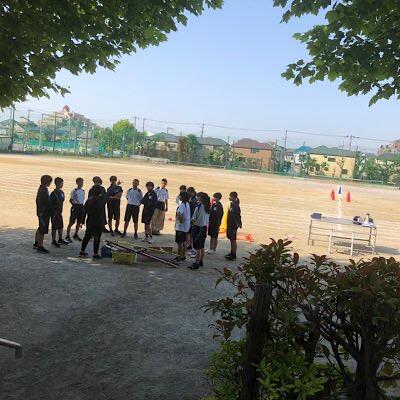 休憩時間、涼しい教室に戻り、水分補給を行い、11:35に元の位置に集合しました