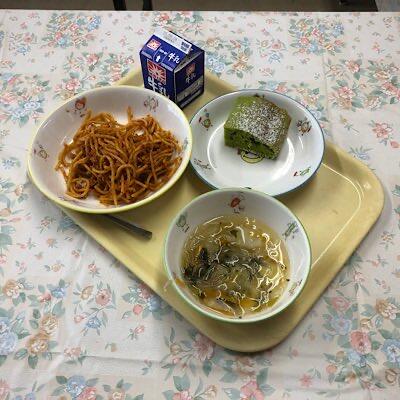 ボロネーゼスパゲッティ キャベツスープ ほうれん草ケーキ 牛乳