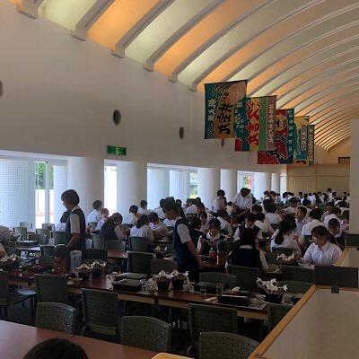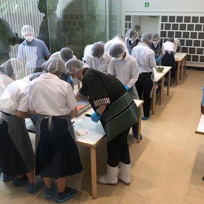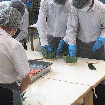 昼食会場では、鱒寿司作り体験をしたクラスがあります