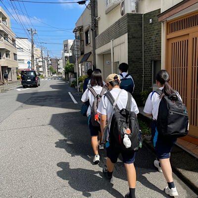 市川市内の史跡、名所を見学し、今後の班別行動のシミュレーションをしています