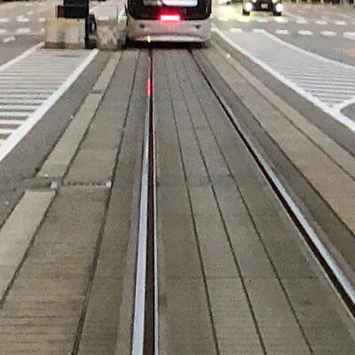 富山市中心街を走る路面電車のレールでした