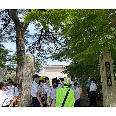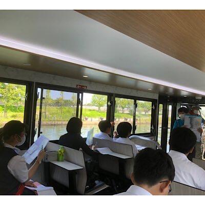 富山市内クラス別見学コースに分かれてホテルを出発します