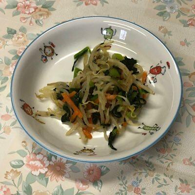 『畑の恵みトリオ』小松菜、もやし、にんじんは、歯応えシャキシャキで、ごま油の香ばしさで心地よい味わい