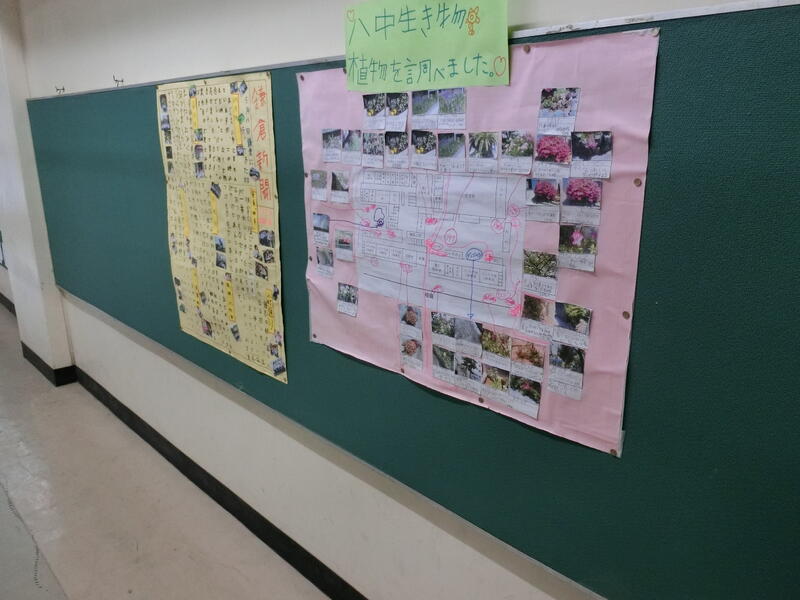 ひとみ学級の前掲示板に、様々な折り紙作品が掲示されていました。