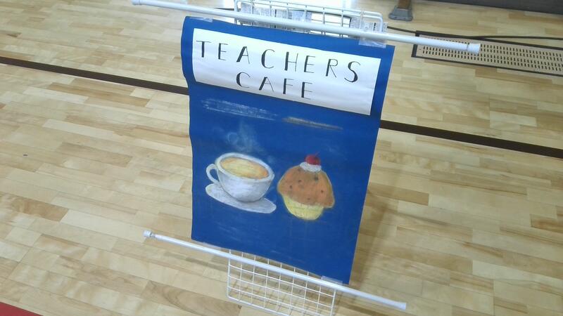 「ティーチャーズカフェ」の看板は、東国分中学校美術部の生徒さんに依頼をしたそうです。とても上手ですね。
