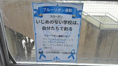 ブルーリボン運動は「いじめ防止」に向けた取組で、「いじめのない学校は、自分たちで作る!」というスローガンの下、いじめ根絶に賛同する児童生徒にブルーリボンを配布し、カバンなど見えるところにつけて意思表示をするというもので、現在各学校が準備を進めているところです。