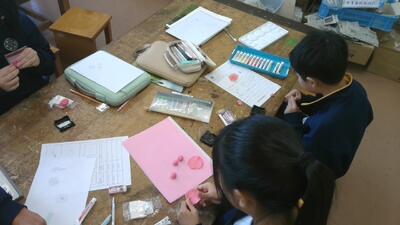12月3日(水)、東国分中学校の生徒会役員が曽谷小学校の代表委員にブルーリボンの作り方を伝えに曽谷小学校を訪問しました。