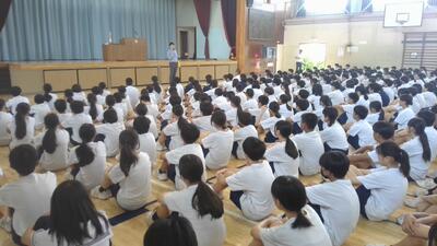 学期の締めくくりに、20日に大掃除、最終日の23日に終業集会を行いました(本校は「二期制」のため、終業式ではなく集会という形で行っています)。