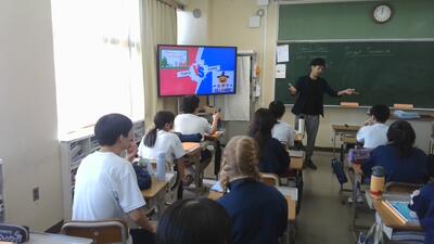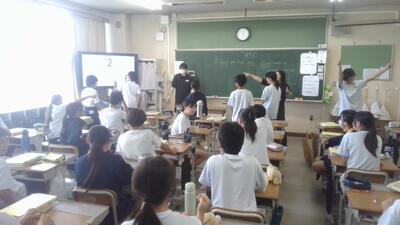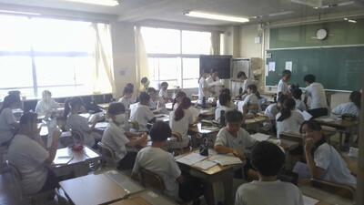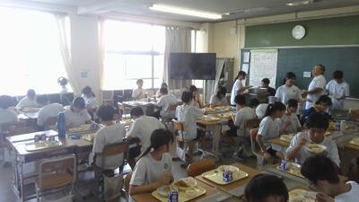 午前は生徒と一緒に授業に参加したり、給食を一緒に食べたりしました。