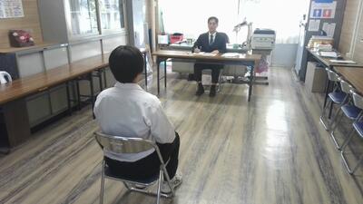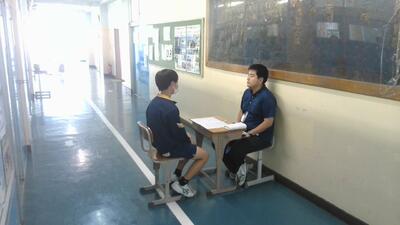 そのため、10月末より3年生全員を対象に昼休みや放課後などの時間を使って一人10分程の校長面接を実施しています。