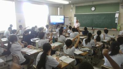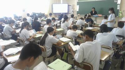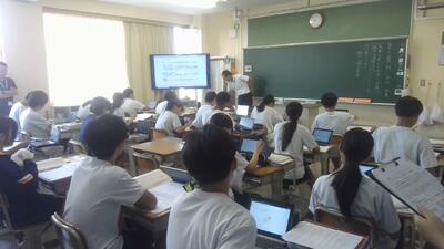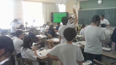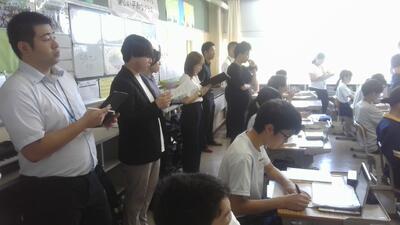 今日は教育委員会の方を講師としてお招きし、3年目の先生の授業を見ていただきました。