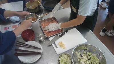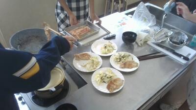 その後給食が届き、参加者の方たちで配膳を行い、試食です。