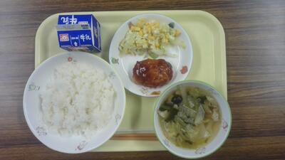 ごはん、さばの味噌煮、れんこんマヨサラダ、吉野汁、牛乳でした。