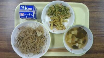 豚丼、豆腐とわかめの味噌汁、白玉ぜんざい、牛乳でした。