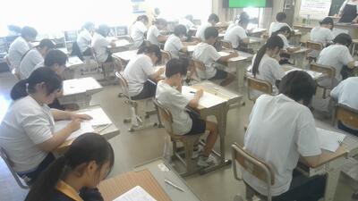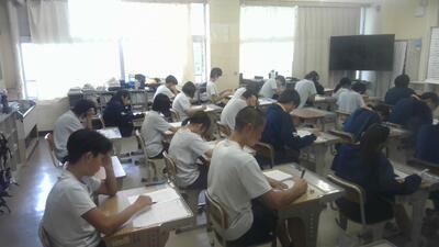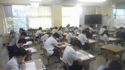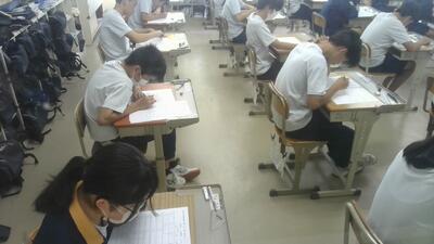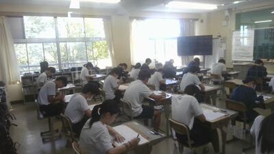 各教室では、問題用紙に真剣に向かう生徒の姿が見られています。